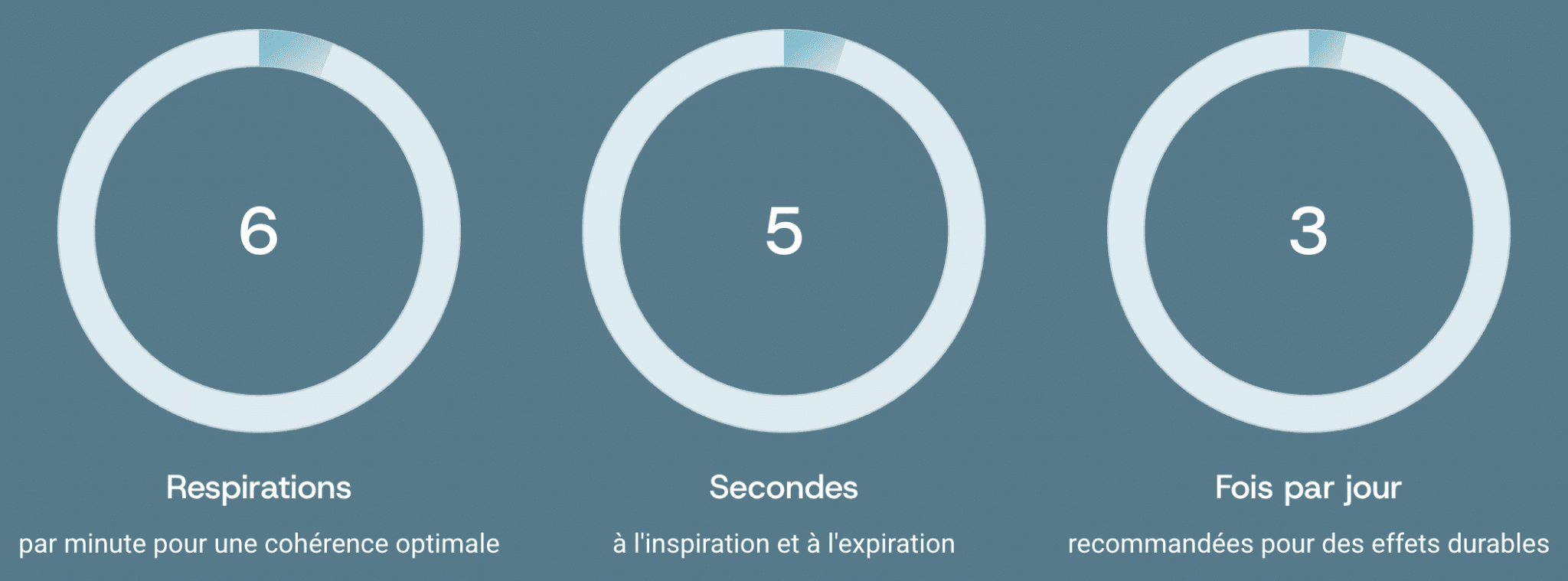 La cohérence cardiaque consiste à respirer à un rythme de 6 respirations par minute (5 secondes inspiration, 5 secondes expiration).