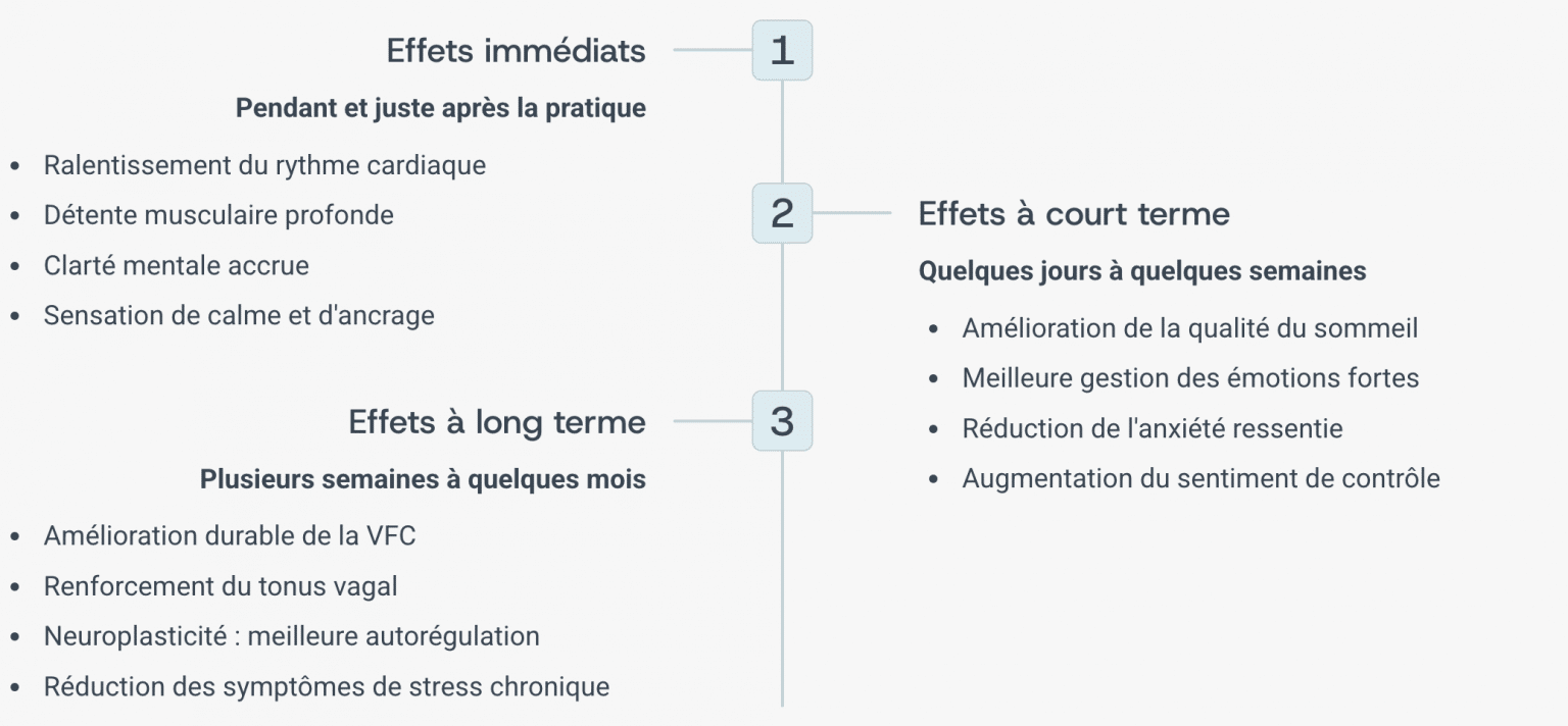 Les effets de la respiration consciente se manifestent à plusieurs niveaux temporels. Comprendre cette progression t’aide à maintenir ta motivation et à observer les transformations.